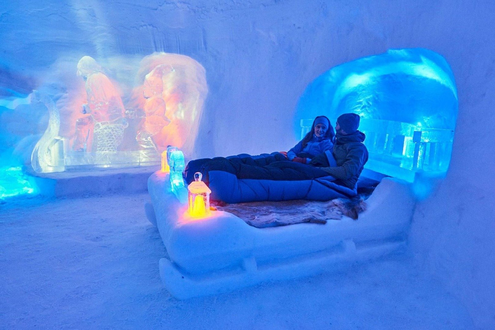 Erleben Sie das magische Nordlicht und übernachten Sie in einem traditionellen Iglu in Lappland. Mit warmen Schlafsäcken und einem unvergleichlichen Blick auf den klaren Sternenhimmel bietet diese Unterkunft ein unvergessliches Erlebnis für Abenteuerlustige und Naturliebhaber.